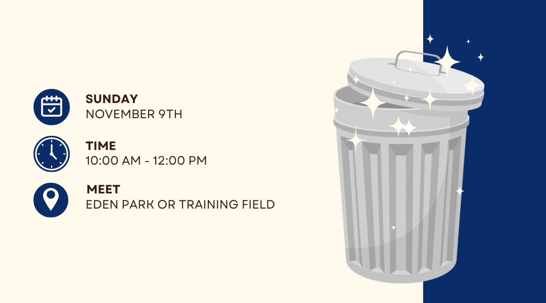 In preparation for winter, join us for some weed pulling and neighborhood clean-up. Teams will be meeting at Eden Street Park or the Training Field to start the clean-up. Kids are welcome and supplies will be provided.